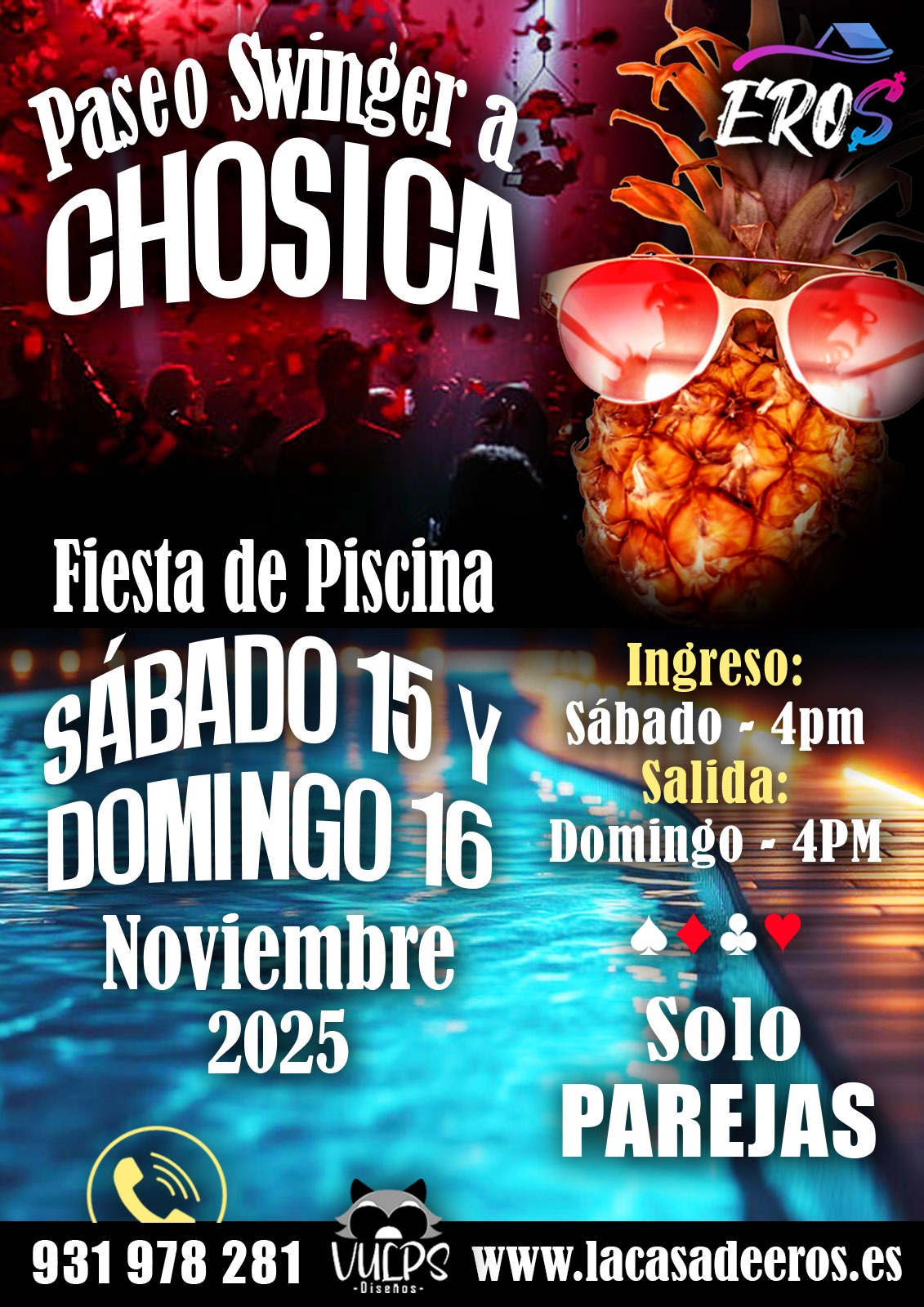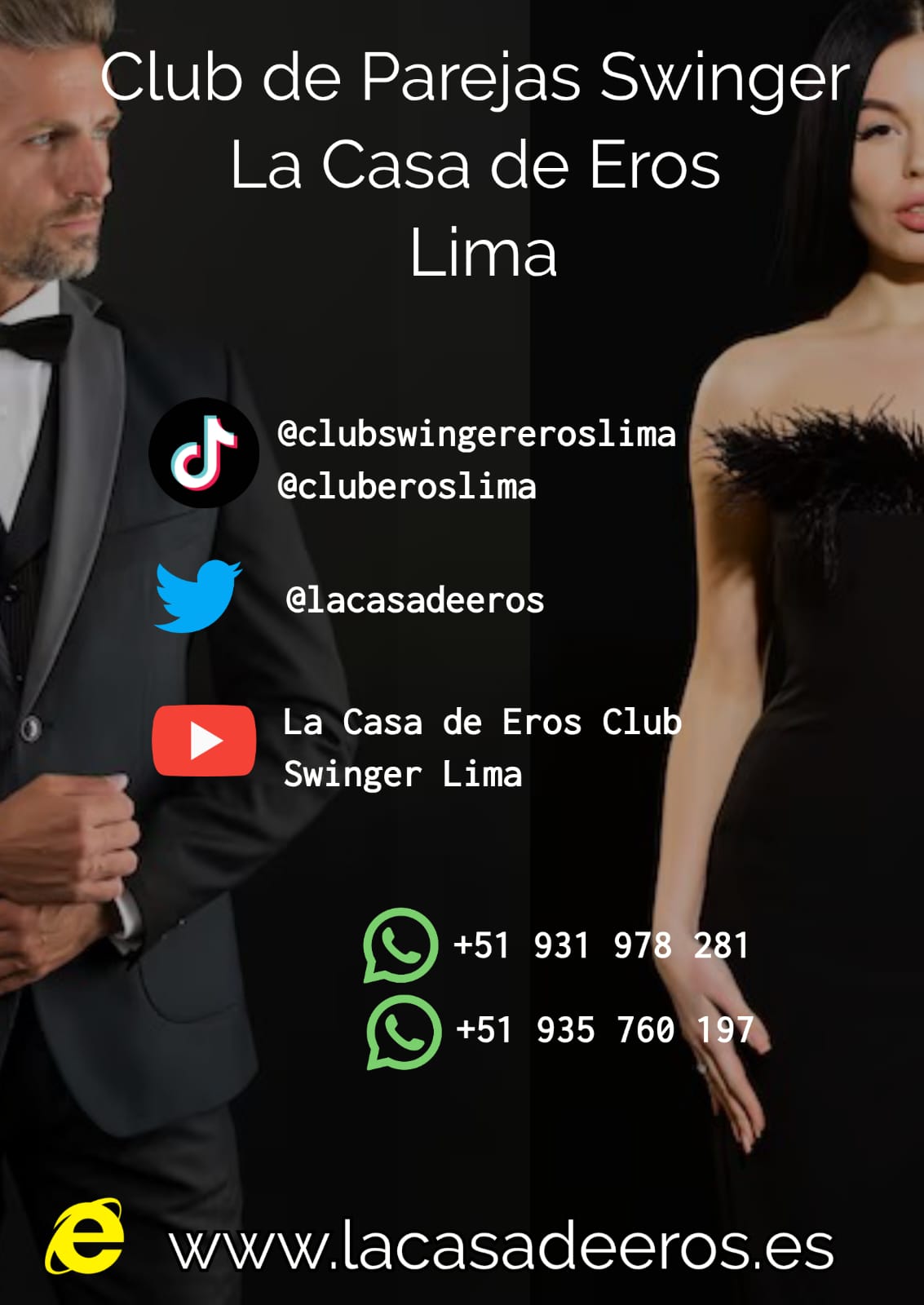 En Eros no trabajamos con "Anfitrionas" o "Modelos Swinger" o "Ficheras" no presentamos "Sexo en Vivo ni Striper" no tenemos "Chicas para GB" ni "chicas debutantes". Todo el que ingresa lo hace para vivir el swinger real en libertad y sin prostitución o proxenetismo.